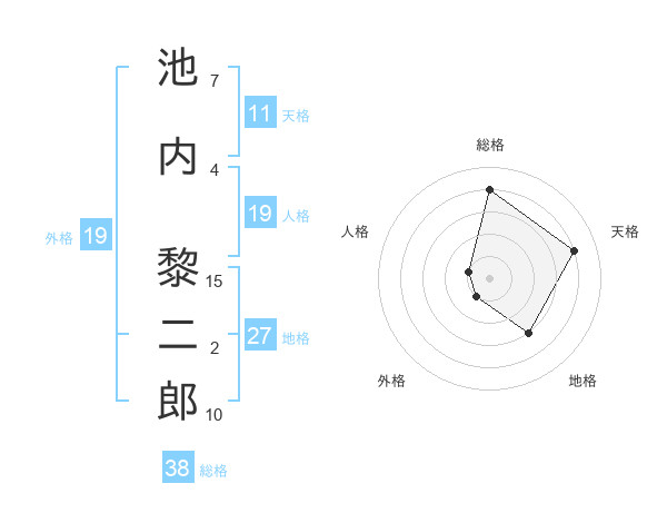池内 黎二郎さんを姓名の画数から五運を鑑定