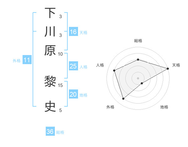 下川原 黎史さんを姓名の画数から五運を鑑定