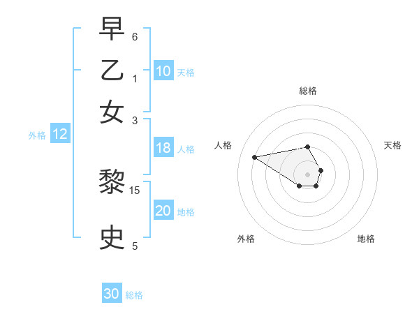 早乙女 黎史さんの総格は30画の2点!