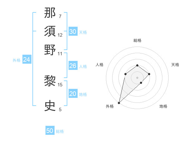 那須野 黎史さんを姓名の画数から五運を鑑定