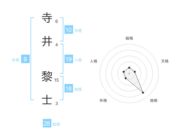 寺井 黎士さんを姓名の画数から五運を鑑定