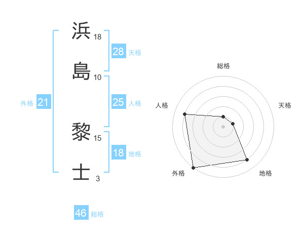 浜島 黎士さんの外格は21画の5点!