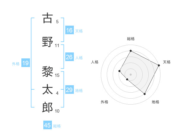 古野 黎太郎さんを姓名の画数から五運を鑑定