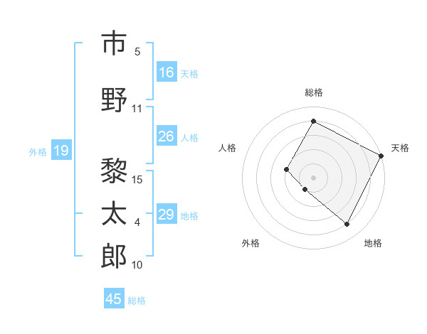 市野 黎太郎さんを姓名の画数から五運を鑑定