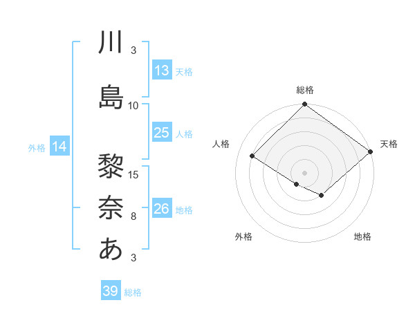川島 黎奈あさんを姓名の画数から五運を鑑定