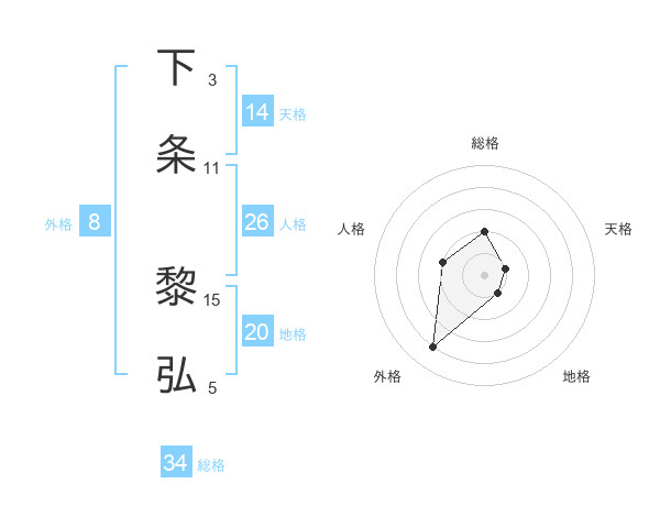 下条 黎弘さんの天格は14画の1点!