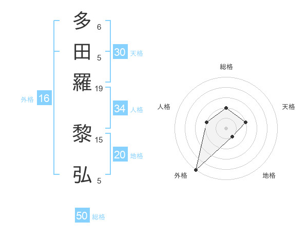 多田羅 黎弘さんの総格は50画の2点!