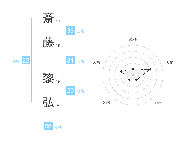 斎藤 黎弘さんを姓名の画数から五運を鑑定
