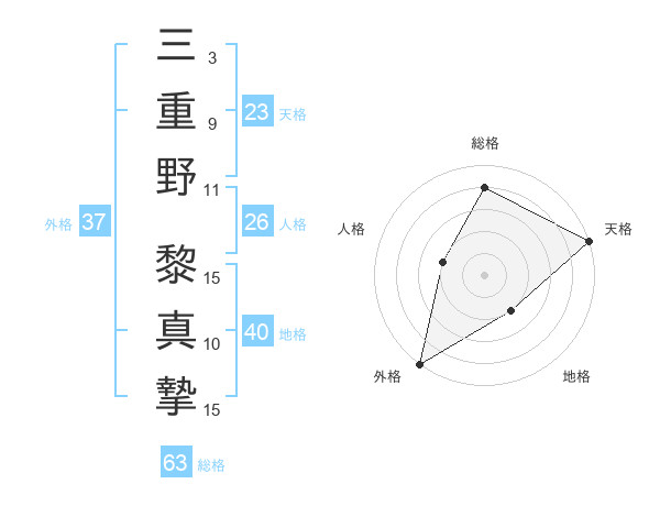 三重野 黎真摯さんを姓名の画数から五運を鑑定