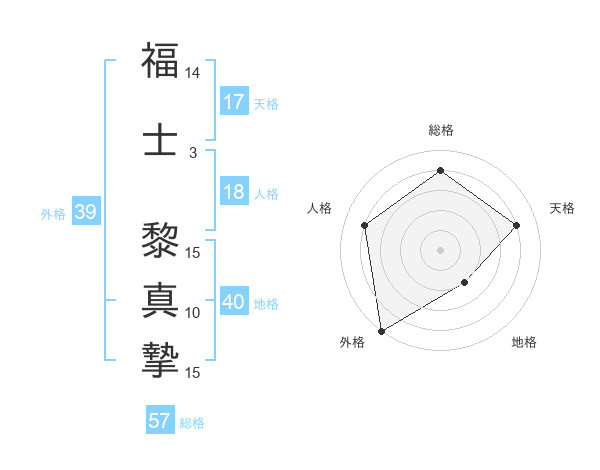 福士 黎真摯さんを姓名の画数から五運を鑑定