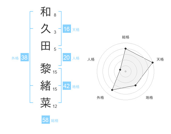 和久田 黎緒菜さんを姓名の画数から五運を鑑定