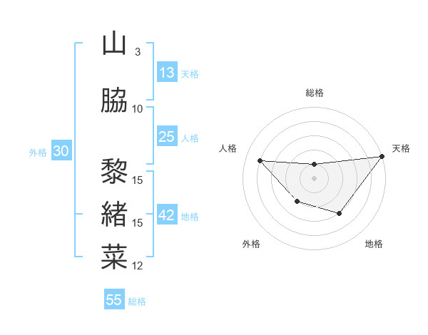 山脇 黎緒菜さんの天格は13画の5点!