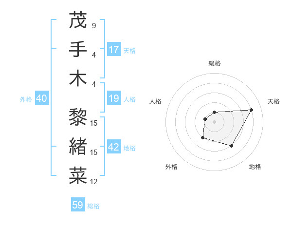 茂手木 黎緒菜さんを姓名の画数から五運を鑑定