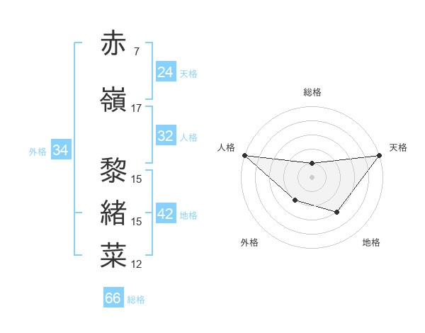 赤嶺 黎緒菜さんの天格は24画の5点!