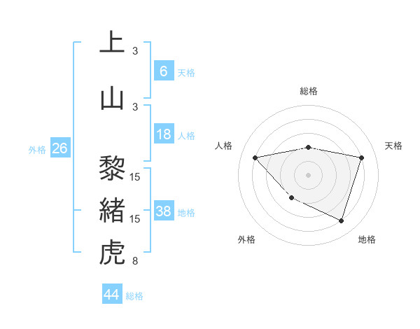 上山 黎緒虎さんを姓名の画数から五運を鑑定