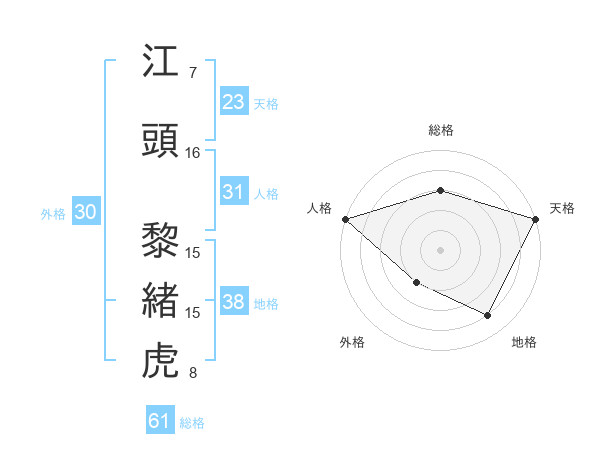 江頭 黎緒虎さんを姓名の画数から五運を鑑定