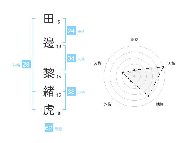 田邊 黎緒虎さんを姓名の画数から五運を鑑定