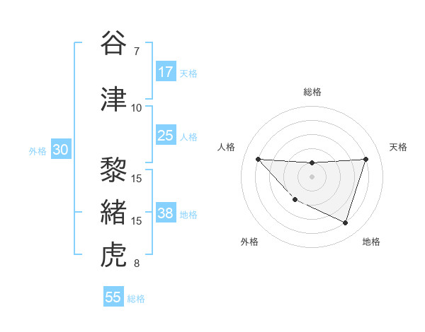 谷津 黎緒虎さんを姓名の画数から五運を鑑定