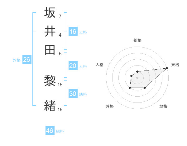 坂井田 黎緒さんを姓名の画数から五運を鑑定