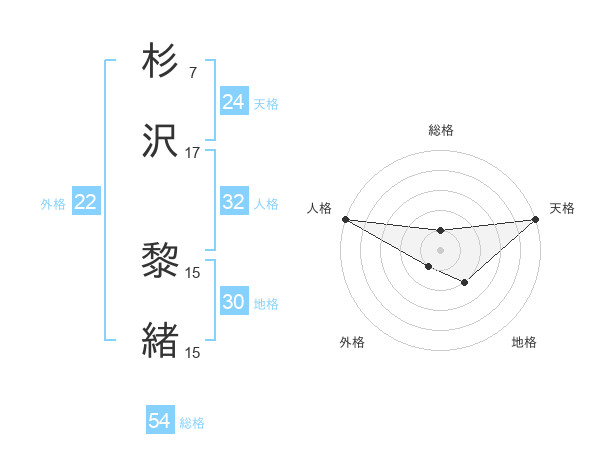 杉沢 黎緒さんを姓名の画数から五運を鑑定