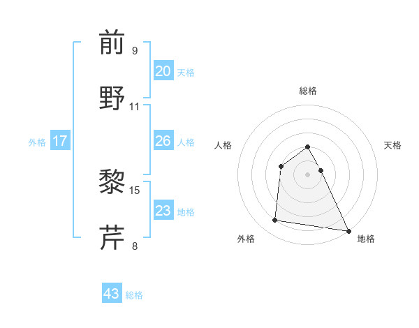 前野 黎芹さんを姓名の画数から五運を鑑定
