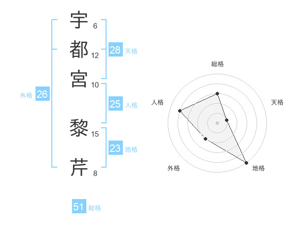 宇都宮 黎芹さんを姓名の画数から五運を鑑定