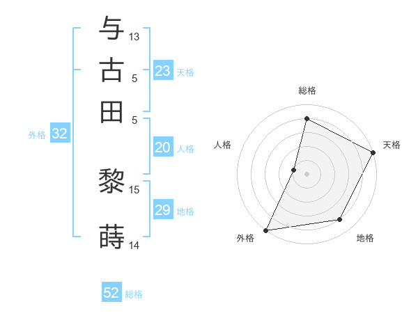 与古田 黎蒔さんを姓名の画数から五運を鑑定