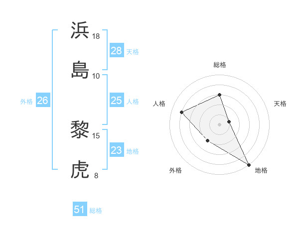 浜島 黎虎さんを姓名の画数から五運を鑑定