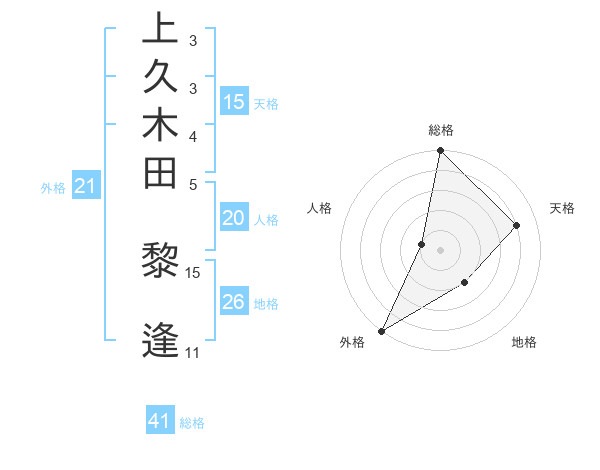 上久木田 黎逢さんを姓名の画数から五運を鑑定