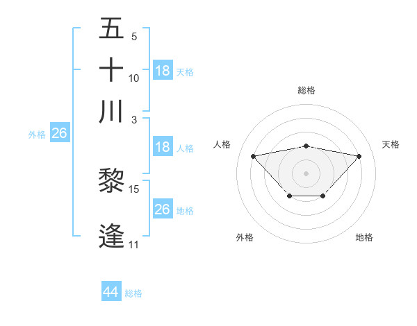 五十川 黎逢さんを姓名の画数から五運を鑑定