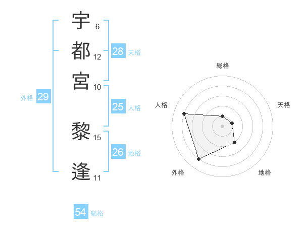 宇都宮 黎逢さんを姓名の画数から五運を鑑定