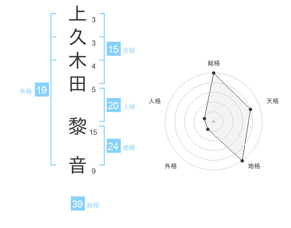 上久木田 黎音さんを姓名の画数から五運を鑑定