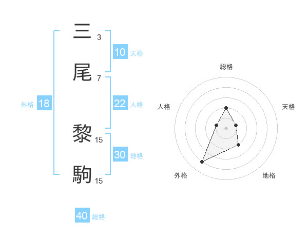 三尾 黎駒さんを姓名の画数から五運を鑑定