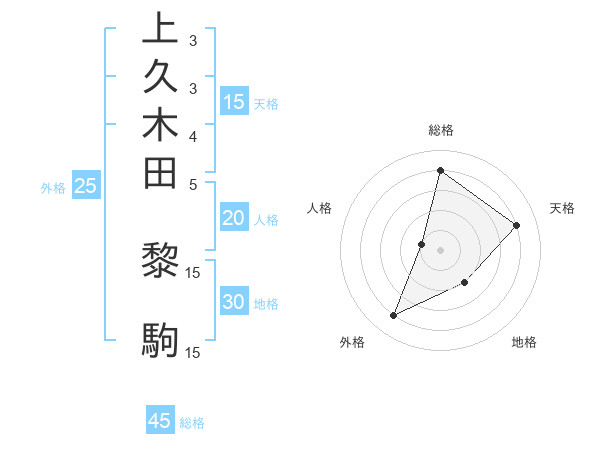 上久木田 黎駒さんを姓名の画数から五運を鑑定