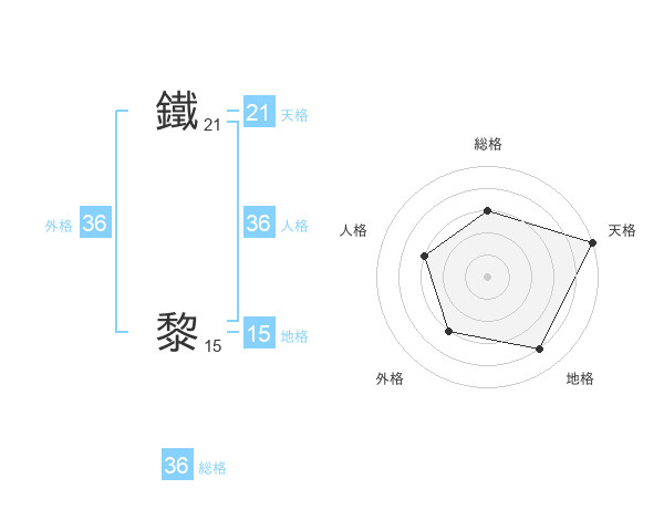 鐵 黎さんの外格は36画の3点!