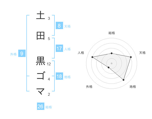土田 黒ゴマさんを姓名の画数から五運を鑑定