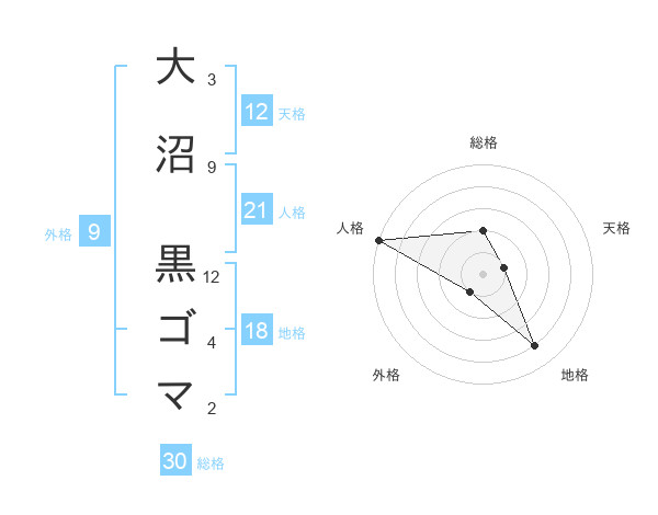 大沼 黒ゴマさんを姓名の画数から五運を鑑定