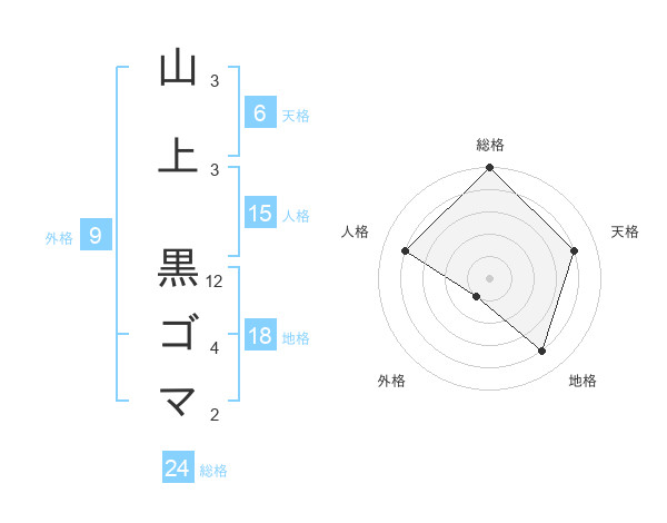 山上 黒ゴマさんを姓名の画数から五運を鑑定