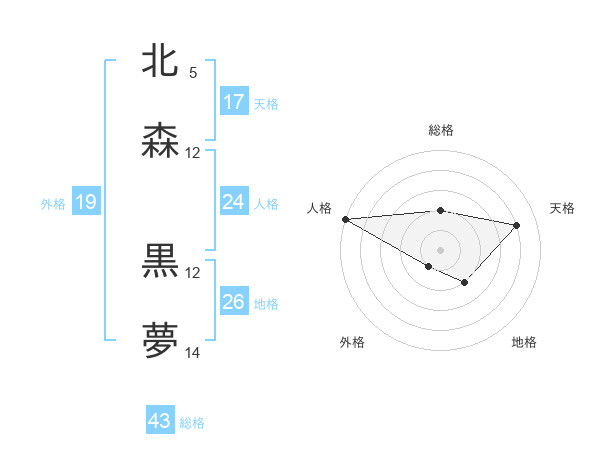 北森 黒夢さんを姓名の画数から五運を鑑定