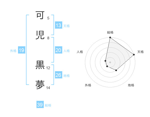 可児 黒夢さんの地格は26画の2点!