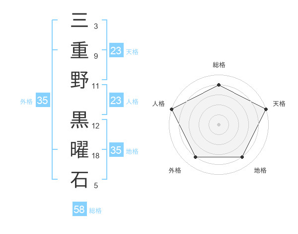 三重野 黒曜石さんを姓名の画数から五運を鑑定