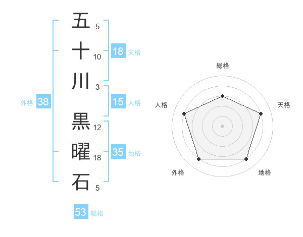 五十川 黒曜石さんを姓名の画数から五運を鑑定