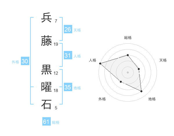 兵藤 黒曜石さんの総格は61画の3点!