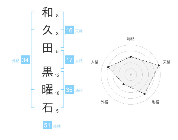 和久田 黒曜石さんの総格は51画の3点!