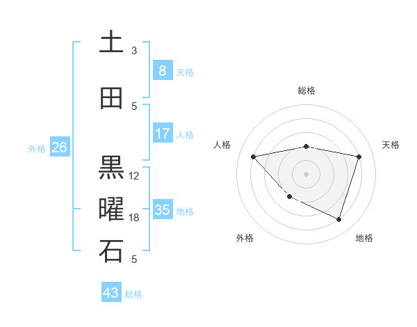 土田 黒曜石さんを姓名の画数から五運を鑑定