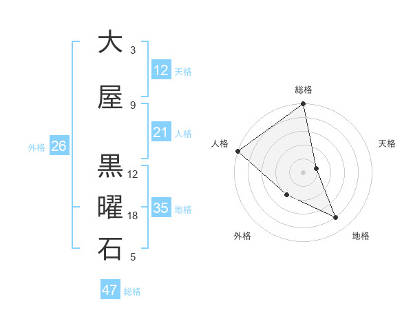 大屋 黒曜石さんを姓名の画数から五運を鑑定