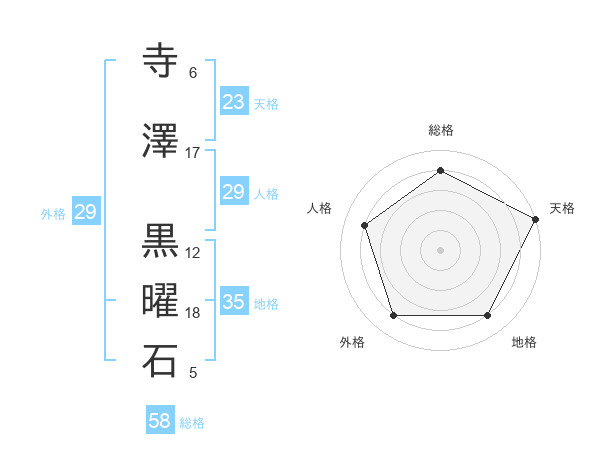 寺澤 黒曜石さんの天格は23画の5点!