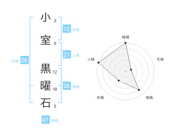 小室 黒曜石さんを姓名の画数から五運を鑑定