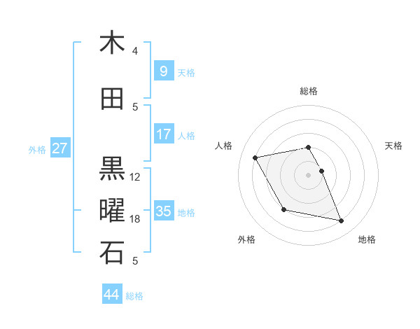 木田 黒曜石さんの総格は44画の2点