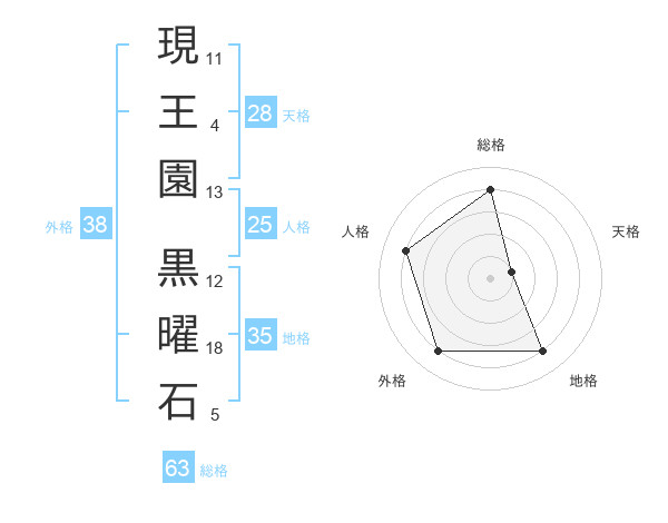 現王園 黒曜石さんを姓名の画数から五運を鑑定